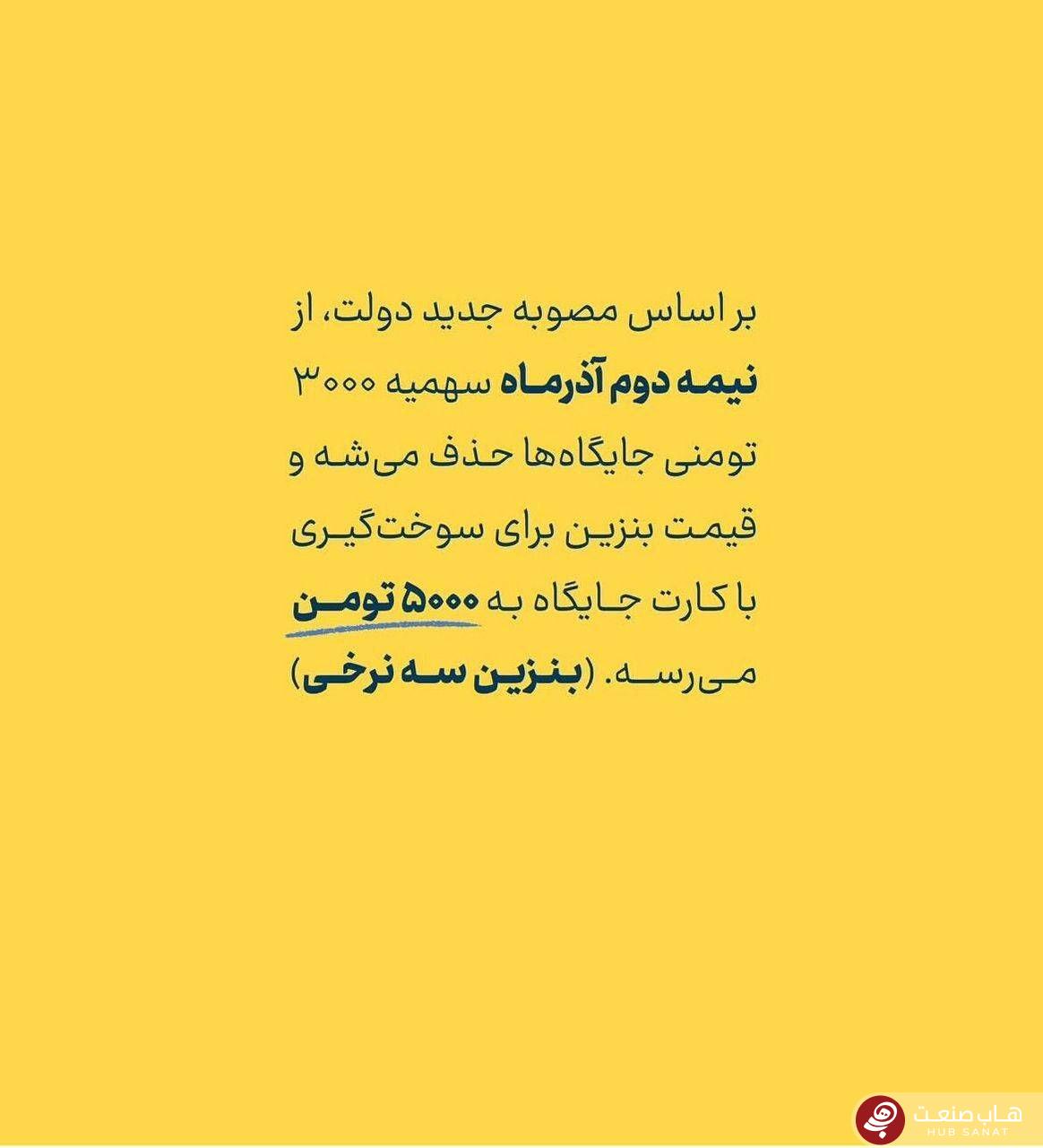براساس مصوبه جدید دولت از نیمه دوم آذر، سهمیه سه هزار تومانی جایگاه‌ها حذف می‌شود.