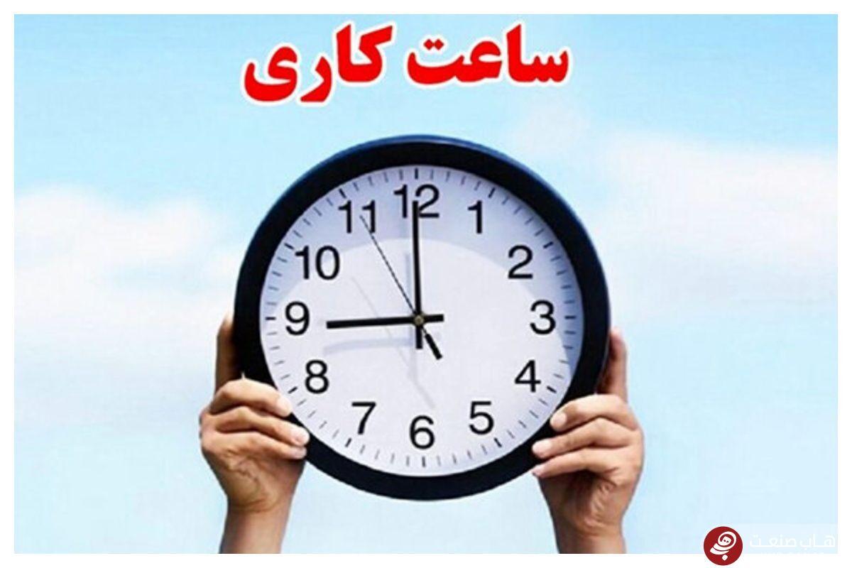 - از اول دی سال جاری تا پانزدهم فروردین ۱۴۰۵، ساعت شروع به کار واحدهای روزکار عادی مستقر در شهر تهران بهصورت شناور از ساعت ۸:۰۰ تا ۹:۰۰ صبح و خاتمه کار شناور از ساعت ۱۴:۰۰ تا ۱۵:۰۰ تعیین شده و ساعت کاری در سایر مناطق از ساعت ۸:۰۰ صبح تا ۱۴:۰۰ خواهد بود. مابقی ساعات کار موظفی با تمهیدات لازم و از طریق دورکاری جبران خواهد شد.